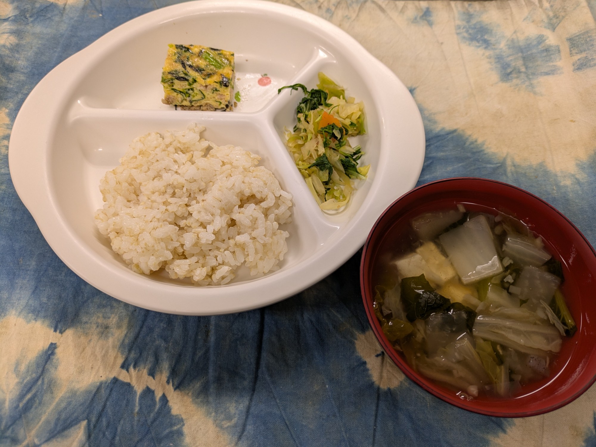 1枚目:【以上児:普通食】ほうれん草の焼き卵・おかか和え・うすくず汁