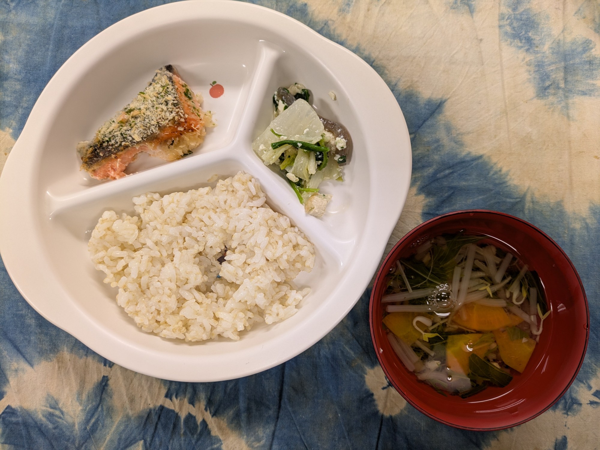 3枚目:【未満児:普通食】サケの和風パン粉焼き・みそ白和え・みぞれ汁