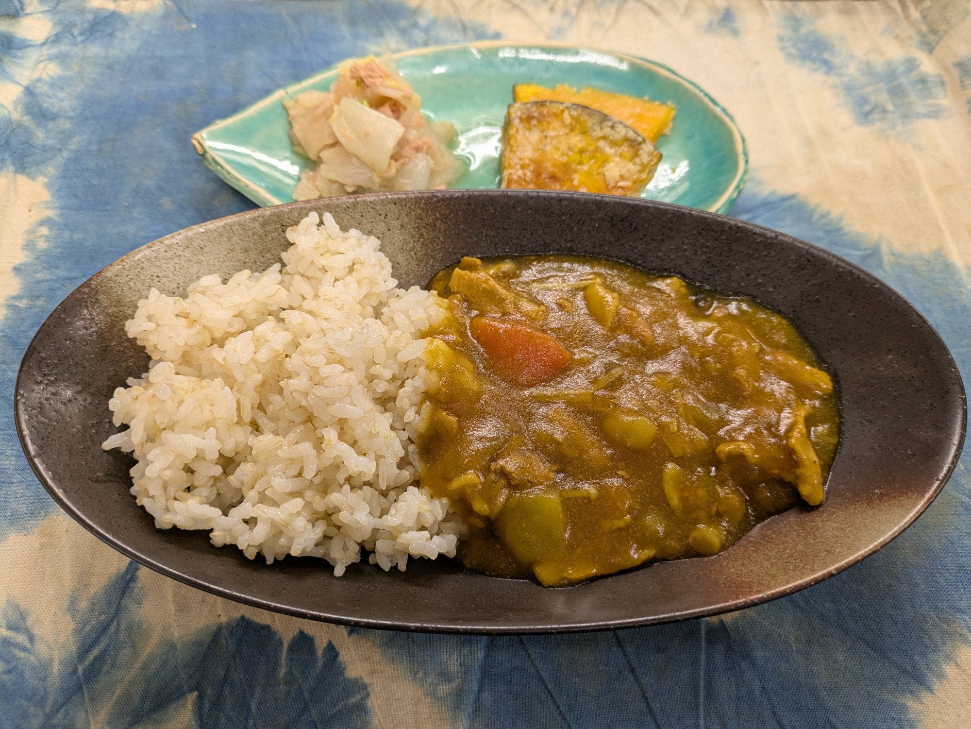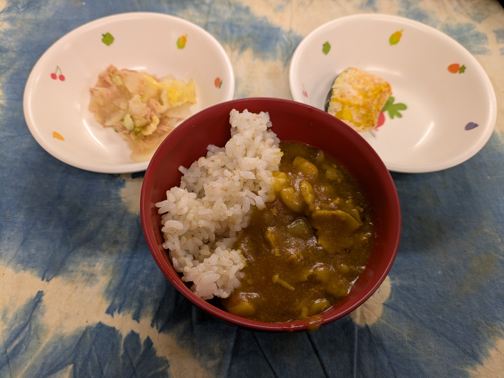 1枚目:【以上児:普通食】きのこのカレーライス・南瓜の唐揚げ・大根の和え物