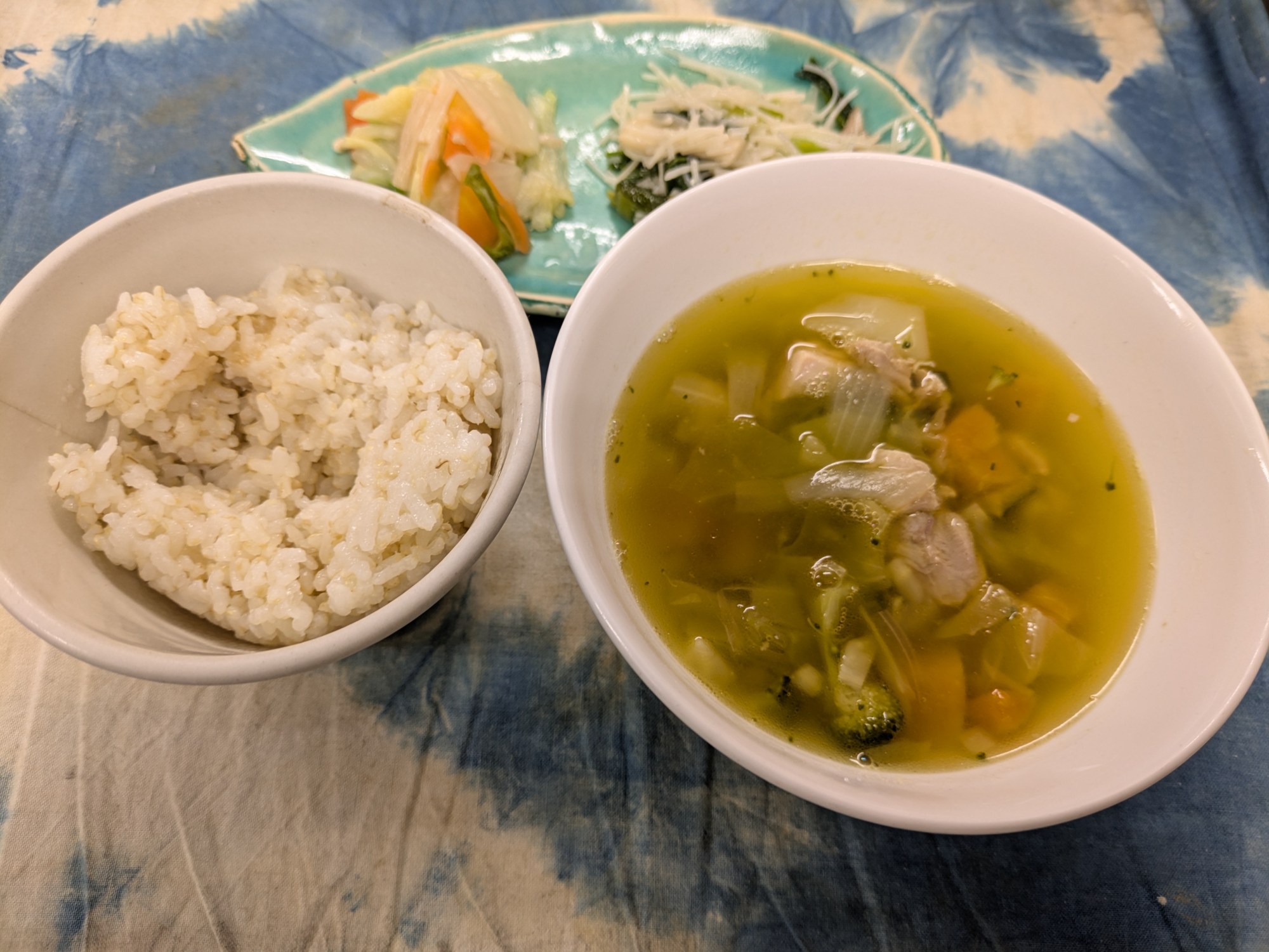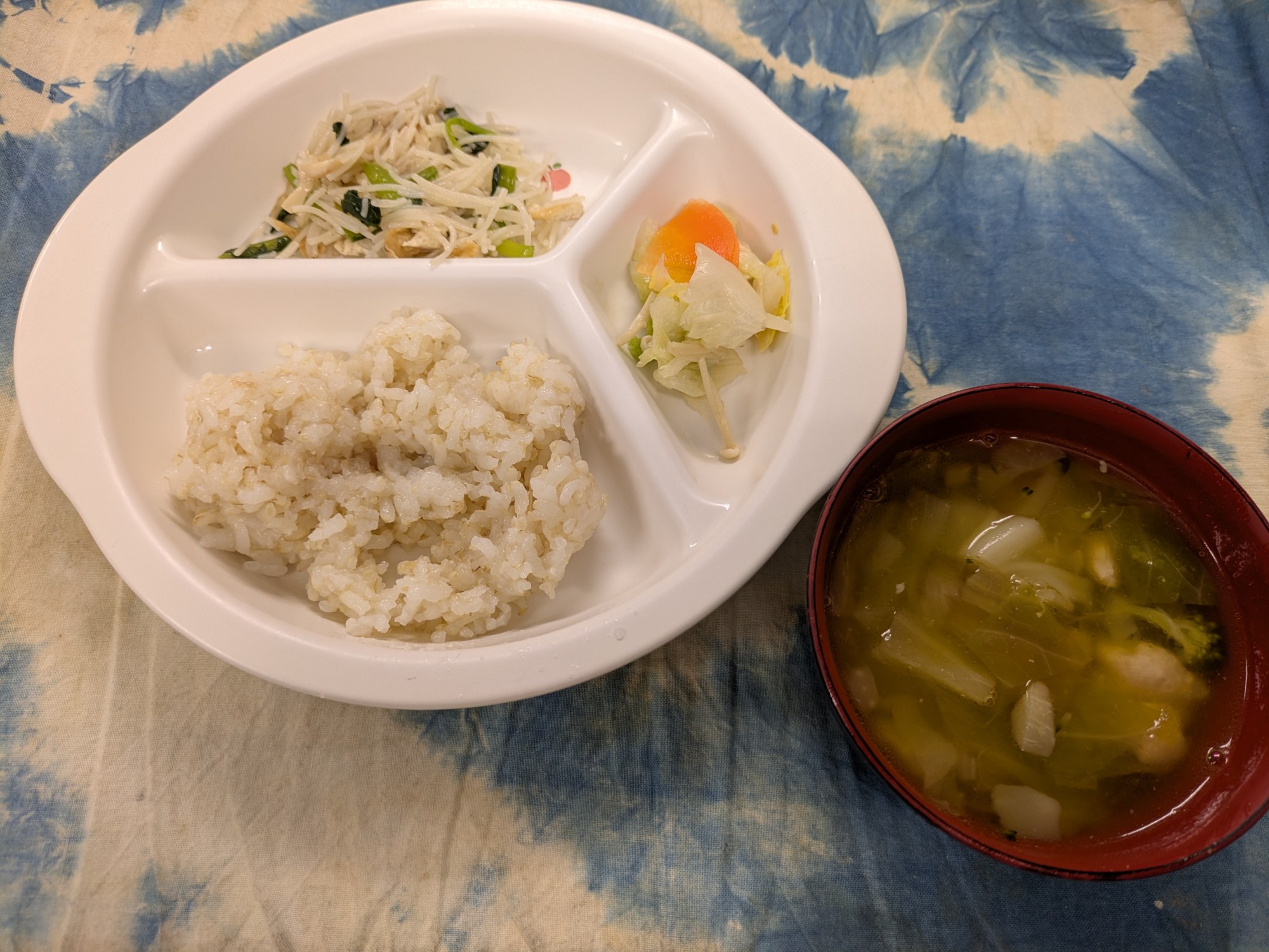1枚目:【以上児:普通食】和風ポトフ・ビーフンとお揚げの炒め物・レモン和え