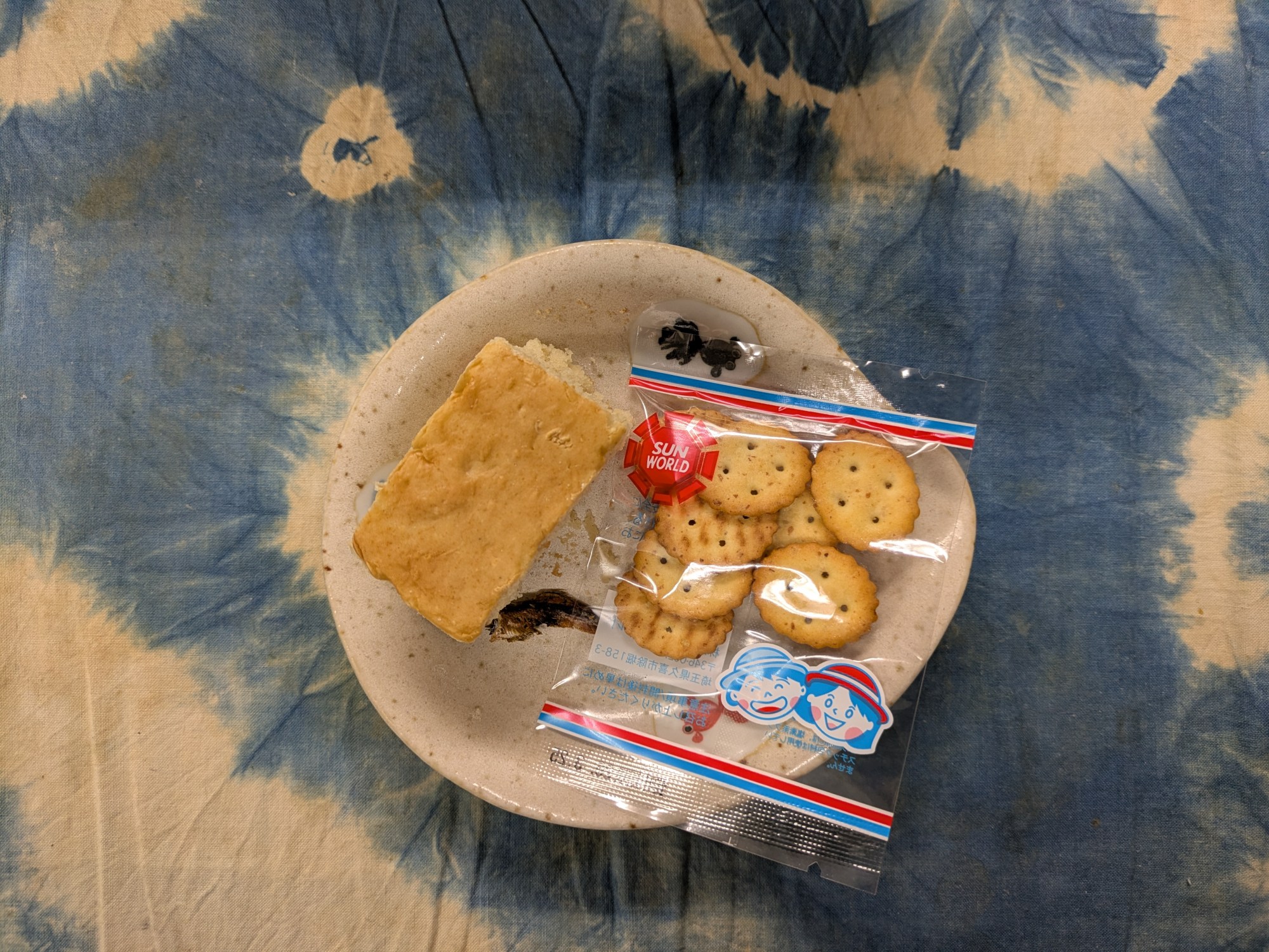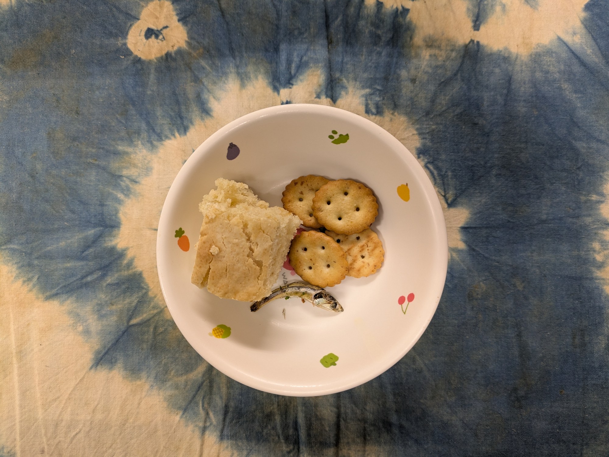 2枚目:【以上児:おやつ】みそケーキ・青のりじゃこ・お菓子