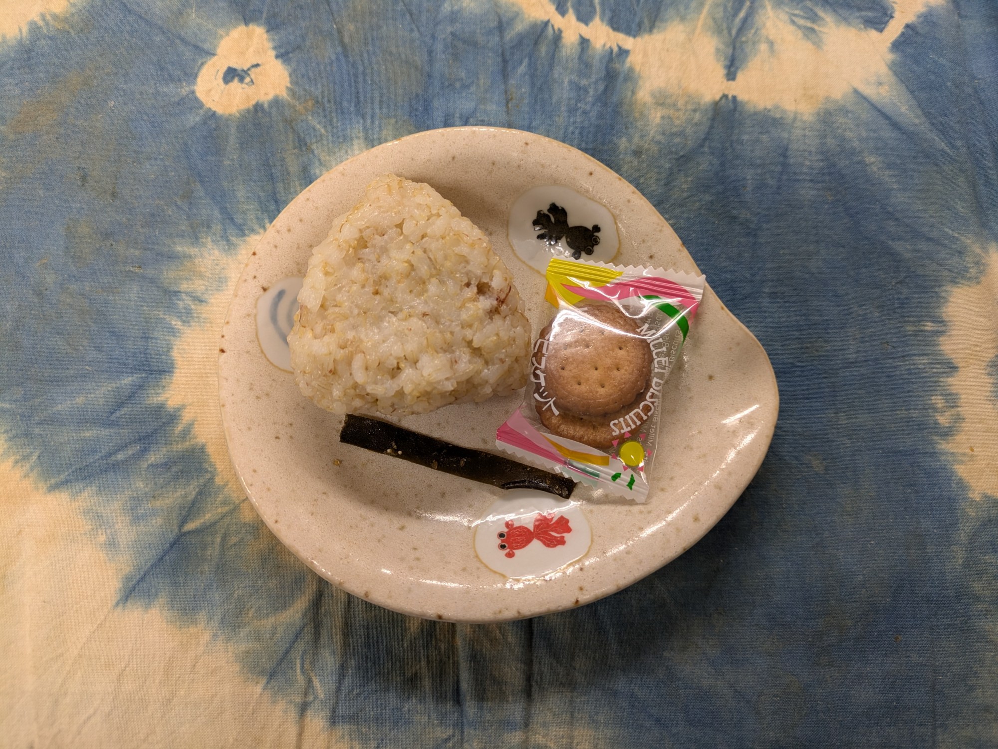 2枚目:【以上児:おやつ】梅とおかかのおにぎり・ごまこんぶ・お菓子