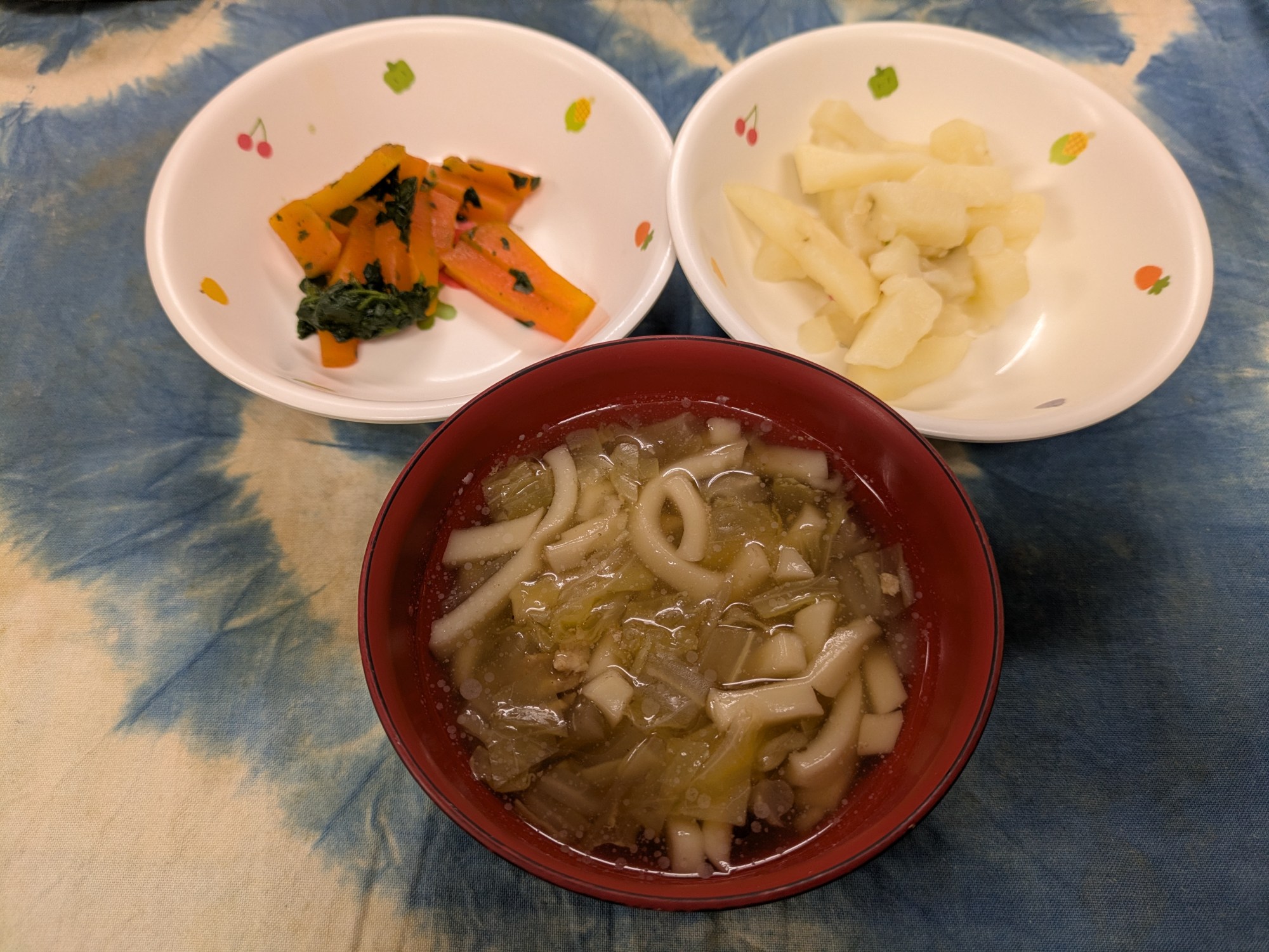 5枚目:【離乳食】あんかけうどん・粉ふき芋・青菜の炒め物